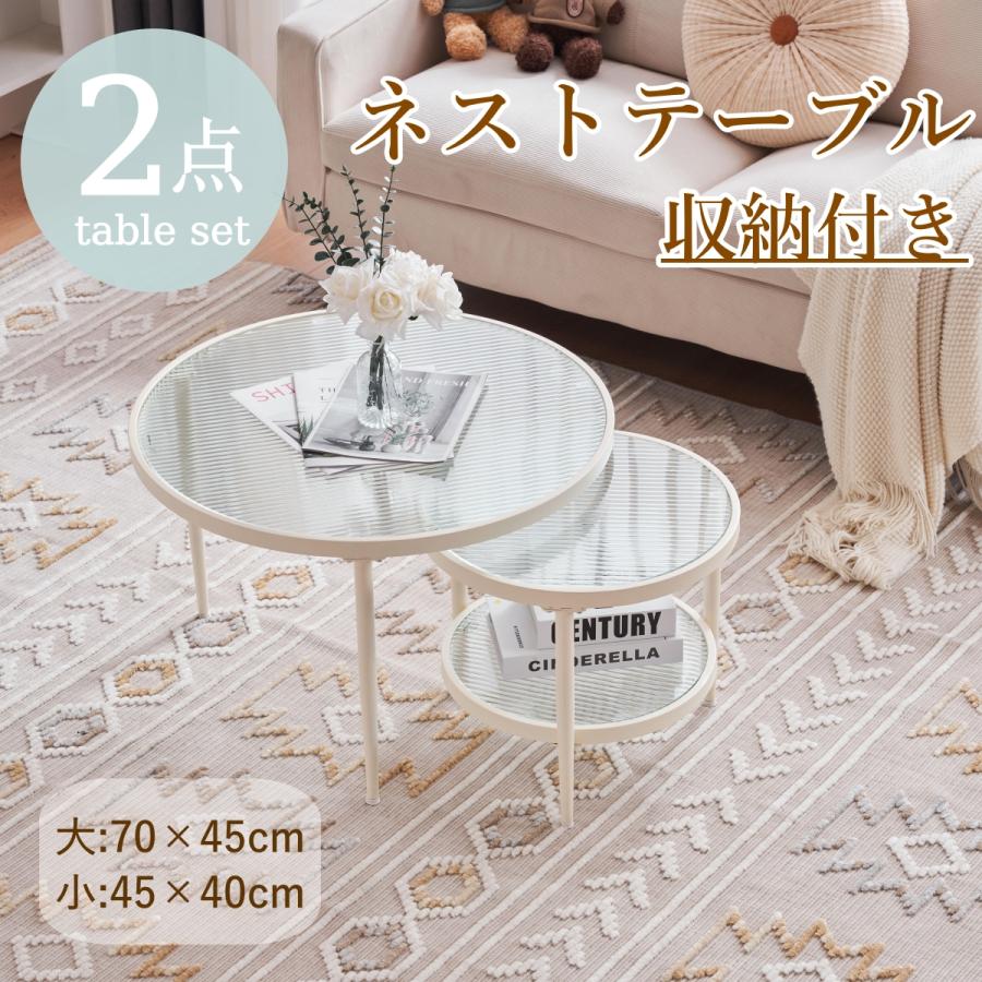 ネストテーブル 2点セット ダイニングテーブル ガラステーブル センターテーブル ガラス天板 おしゃれ サイドテーブル 北欧 円型