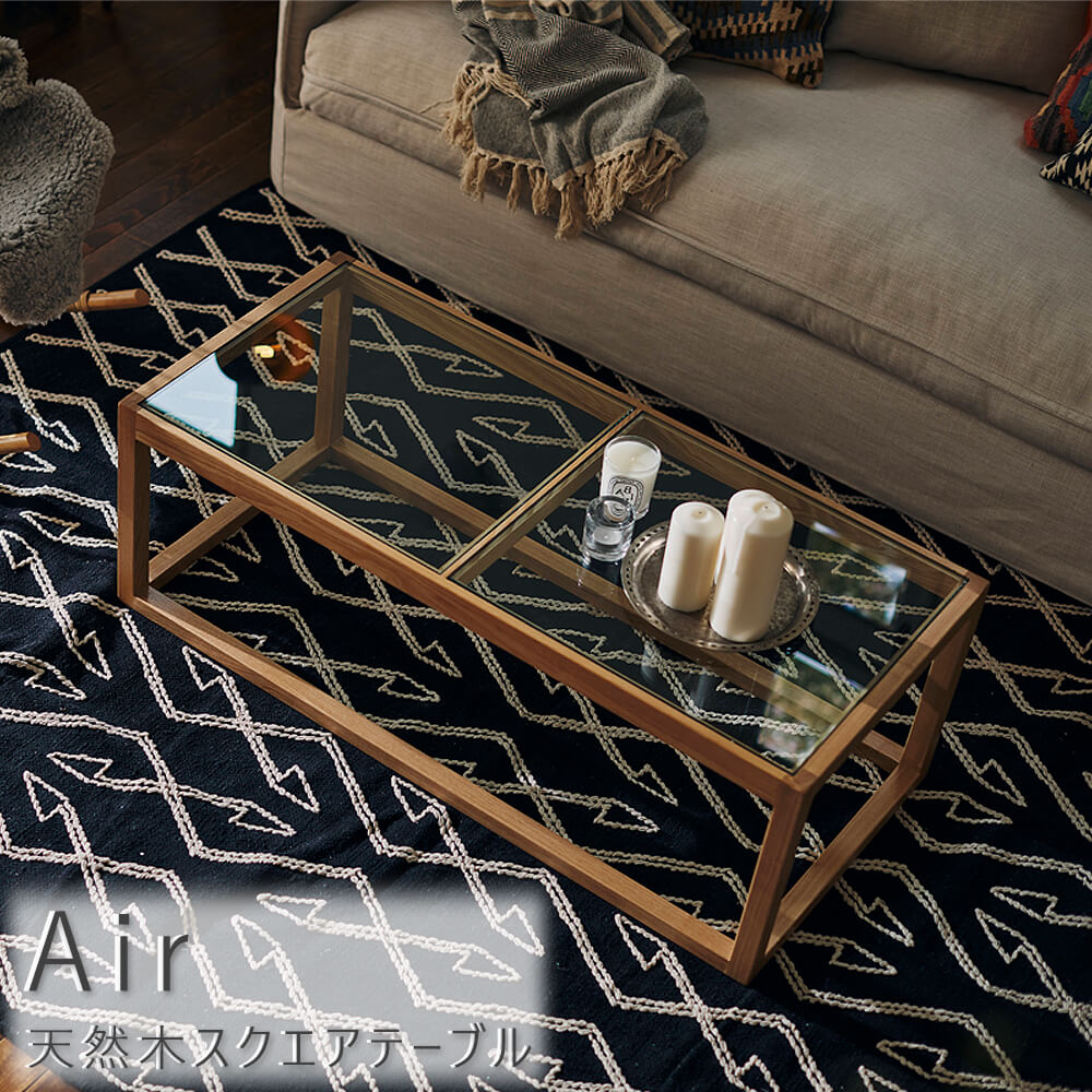 ■Air(エアー) 天然木スクエアテーブル ガラステーブル ローテーブル リビングテーブル センターテーブル ローデスク 天然木