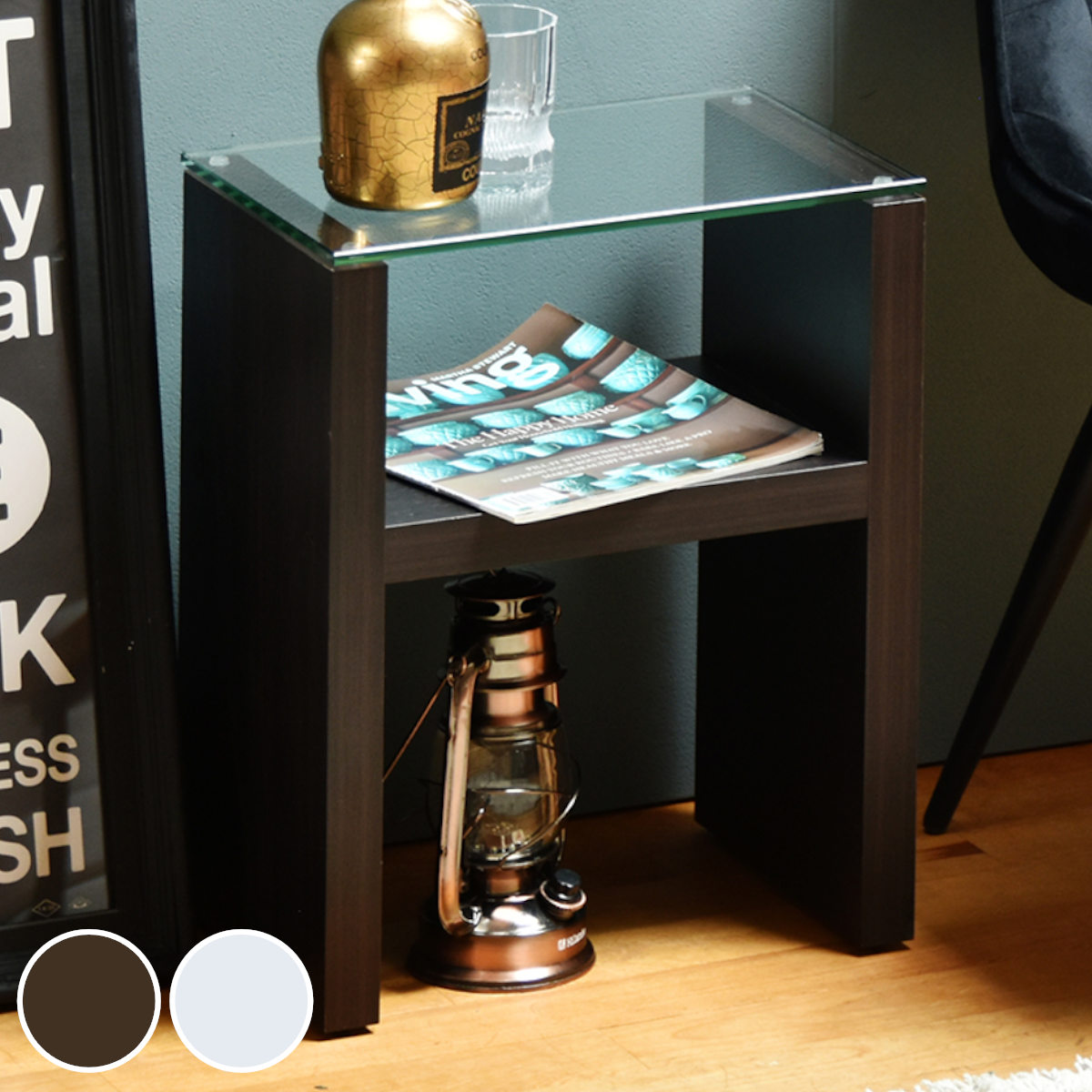 ■サイドテーブル 高さ48.5cm ガラス天板 ( ナイトテーブル ガラステーブル ミニテーブル ベッドサイド 棚付き 収納 ディスプレイ おしゃ