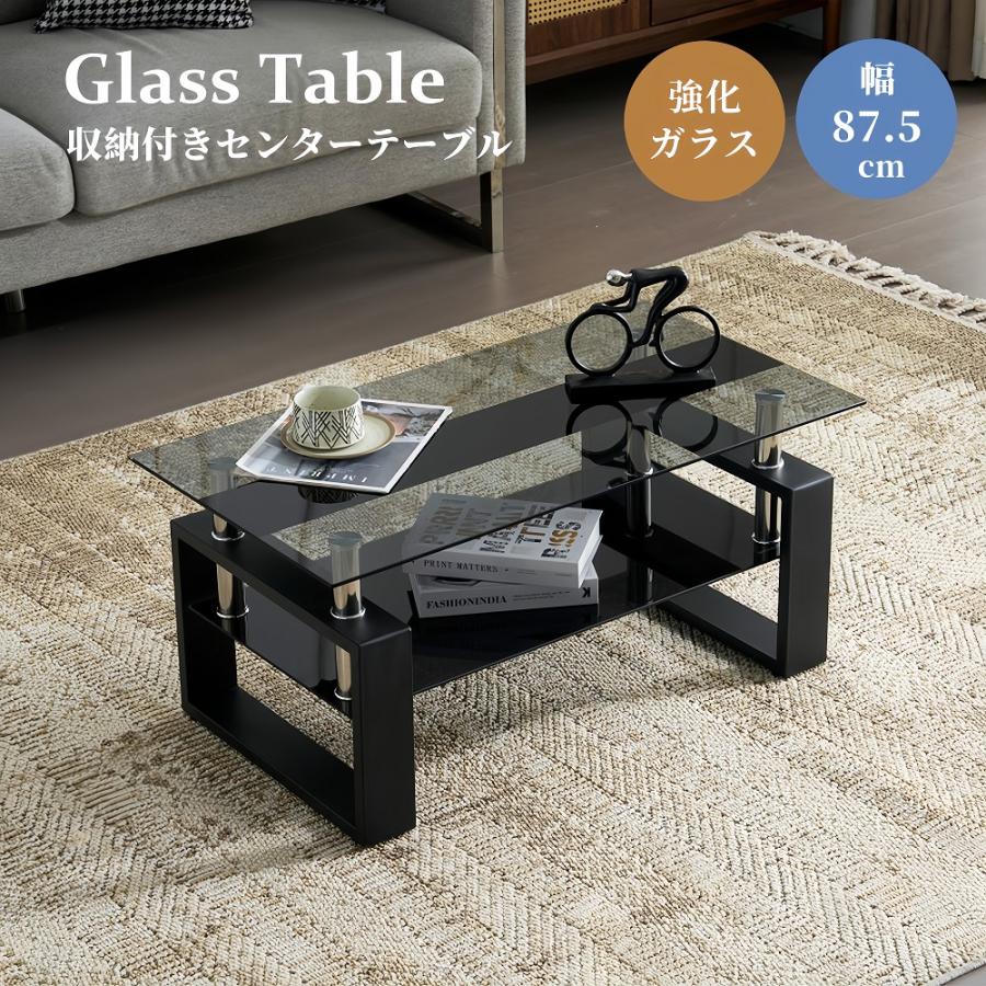 ガラステーブル センターテーブル ローテーブル ガラス天板 収納 ガラス 幅87.5cm 口字型 強化ガラス リビング 高級感 北欧 シンプル モダン リビングテーブル