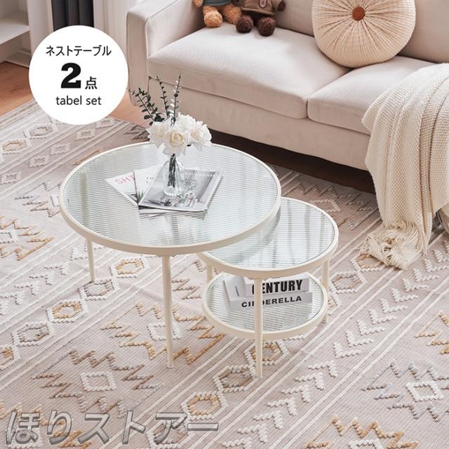 ふぃ 「 2点セット」ガラステーブル ガラス天板 センターテーブル リビングテーブル リビング テーブル ローテーブル ガラス 丸形 新生活応援
