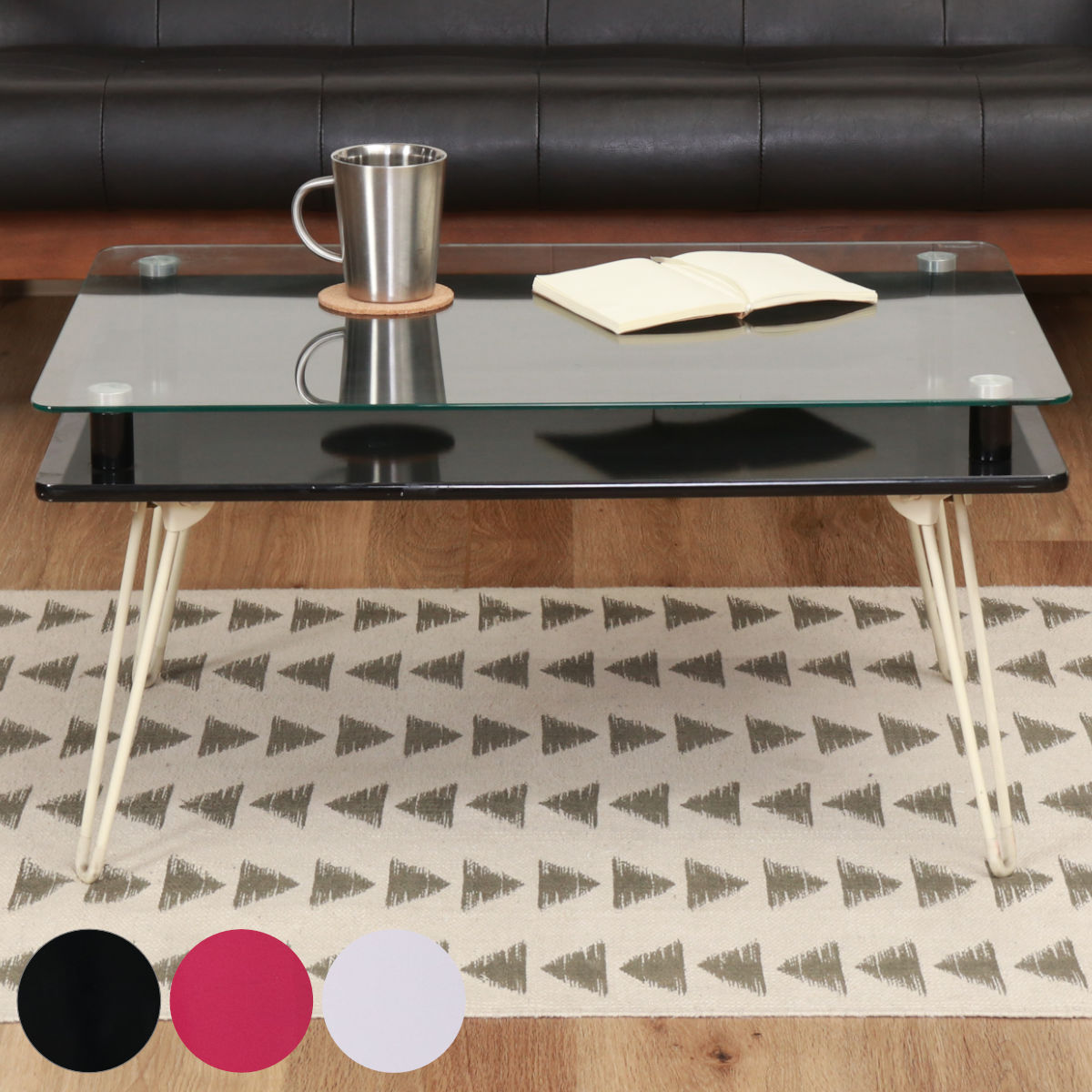 ■ローテーブル 幅70cm ガラステーブル 折りたたみ ( ガラス 天板 長方形 ディスプレイ コンパクト ミニテーブル ブラック ピンク ホワイ