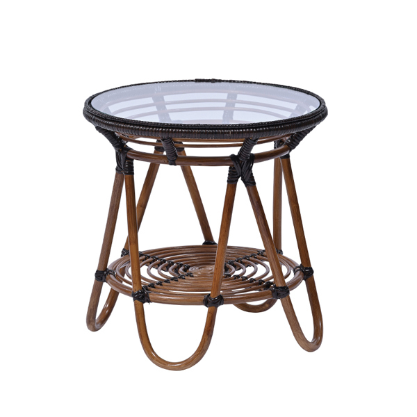 ■サンフラワーラタン T177KA ラタン手編み ガラステーブル ダークブラウン WAHOO シリーズ メーカー直送
