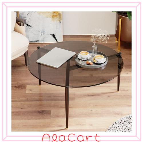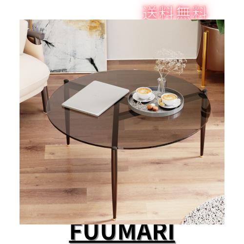 ■ラウンド ガラス テーブル L ブラック W60×D60×H33 円形 テーブル ガラステーブル ラウンドテーブル 丸 ガラス ローテーブル センター