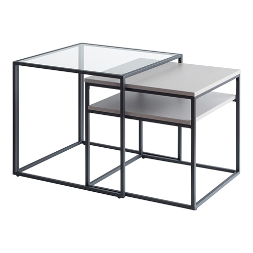 ■宮武製作所【お客様組み立て】ネストセンターテーブル Poluca(ポルカ) グレー ガラステーブル 大小セット NCT-M600-GY【インテリア用品