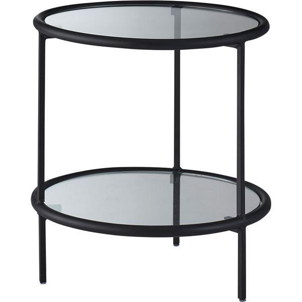 ■サイドテーブル 約幅38×奥行38×高さ38.5cm ブラック アイアン 強化ガラス ラウンド ガラステーブル 2D リビング