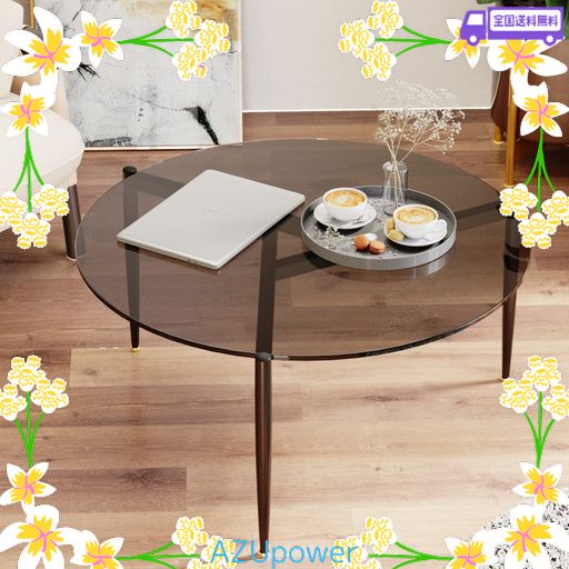 ■Artloge ローテーブル ガラス センターテーブル 丸 ガラステーブル 幅80? リビングテーブル 円形 おしゃれ 丸テーブル グレー