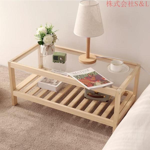 ■ガラステーブル ローテーブル センターテーブル リビングテーブル 株式会社S&L 収納棚 強化ガラス天板 天然木 おしゃれ 幅80×奥行40×