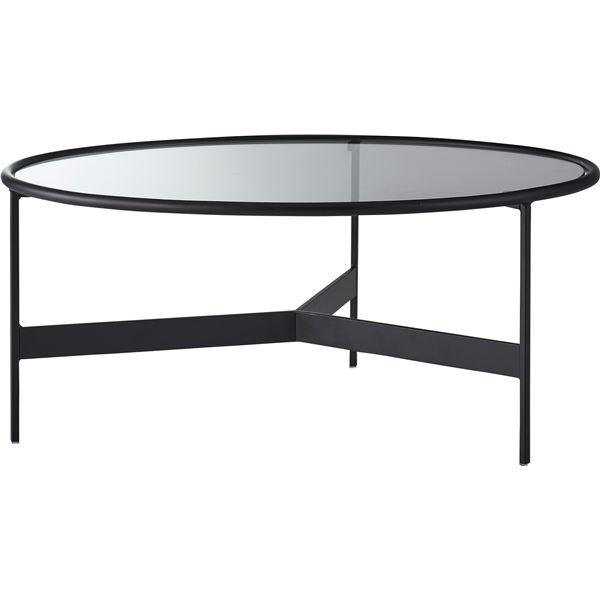 ■ローテーブル センターテーブル 約幅75×奥行75×高さ33cm ブラック アイアン 強化ガラス ラウンド ガラステーブル LL リビング