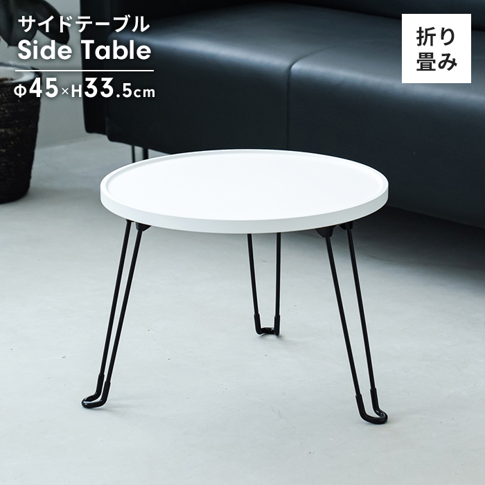 ■【値下げ】テーブル サイドテーブル 折りたたみ式 円形 幅45 ラウンドテーブル 丸テーブル シンプル フチ付き ゴムカバー付き モダン