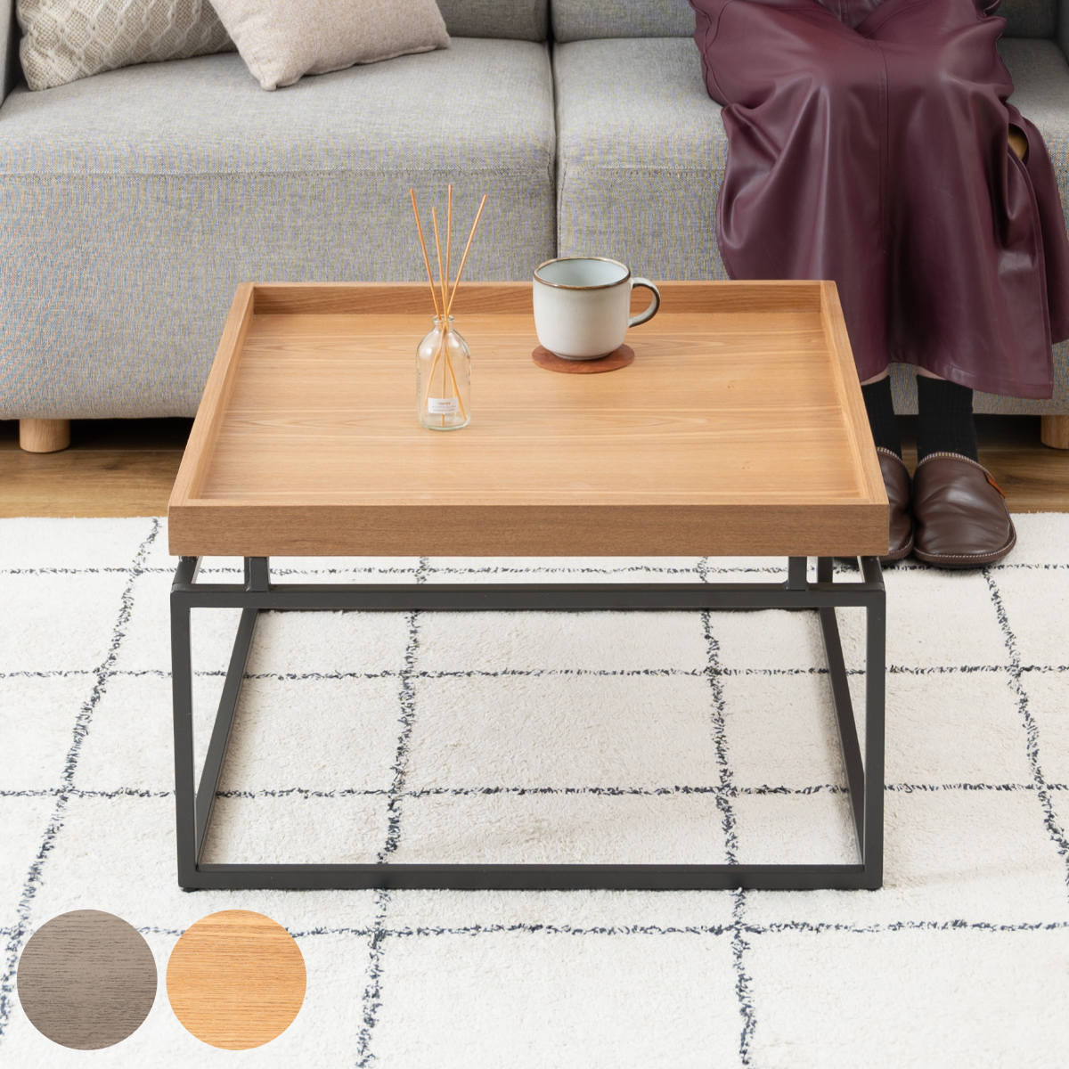 ■リビングテーブル 高さ35cm 天板正方形 センターテーブル ( 幅60cm スクエア ローテーブル テーブル 天然木 スチール脚 モダン スタイリ