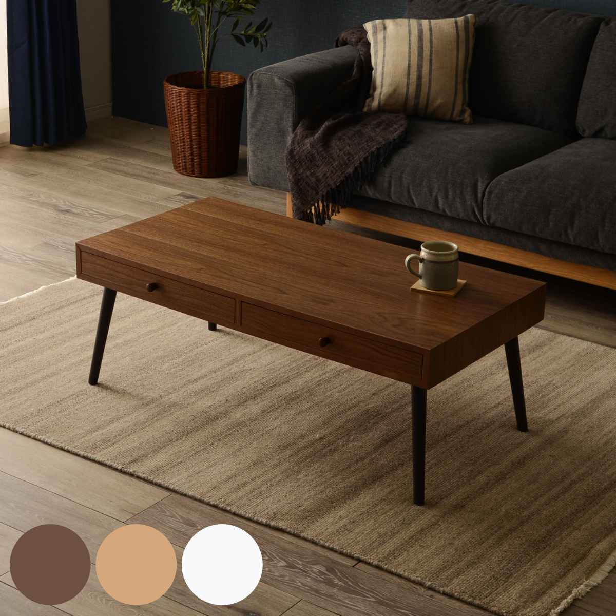 ■センターテーブル 幅100cm 引き出し2個 木製 ( テーブル ローテーブル リビングテーブル 長方形 収納 棚付き おしゃれ 北欧風 モダン 木