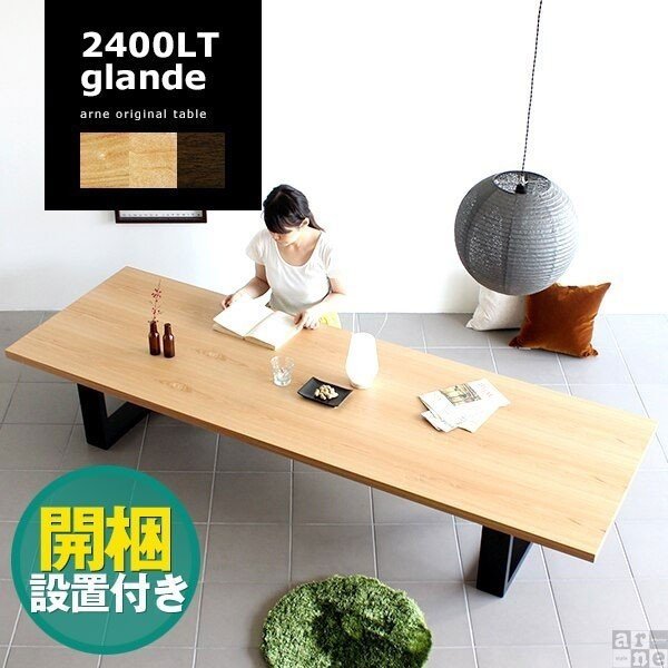 glande 2400LTサイズ:幅2400 奥行800 高さ405 mm材質:[天板]MDF合板、天然木突板(セラウッド塗装)[脚]集成材(ウレタン塗装)カラー:タモ/メープル/ウォールナット本体重量:約52.6kg天板厚み:41mm/天板下から床までの高さ:約364mm天板耐荷重:30kg六角レンチ付属ブランド:arne日本製完成品(脚のみお客様取付け)※北海道・沖縄・離島は送料別途お見積もり【ご注意】離島・郡部など一部配送不可地域あり。不可地域は通常配送便での玄関渡し建物の形態によっては別途追加料金を頂戴する場合あり吊上作業などが必要な場合、追加料金はお客様ご負担確認不十分などの理由による返品・返金不可商品・搬入経路のサイズ等充分にご確認願いますご注文状況により納期に変動がございます。最新の納期情報はカラー選択時にご確認ください。※オーダー商品につき、ご注文のキャンセル・変更につきましてはお届け前でありましても生産手配が済んでいるためキャンセル料(商品代金の50%)を頂戴いたします。※商品到着までの日数は、地域により異なります0000a08819/0000a08820/0000a