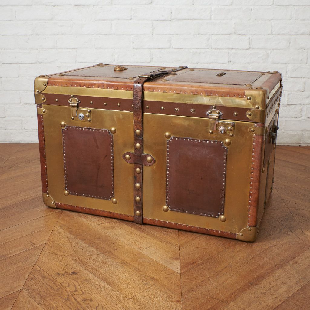 ■英国 ヴィンテージ トランク ケース センターテーブル 本革 真鍮 アンティーク ディスプレイ ローテーブル 店舗什器 収納 ケース 88595