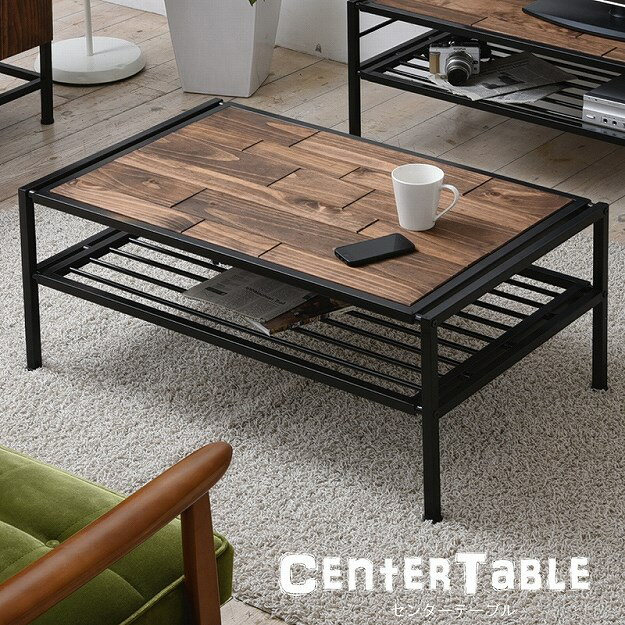 ■アイアン×天然木でレトロ感 センターテーブル 幅90 送料無料 ローテーブル リビングテーブル おしゃれ 棚付き 北欧 モダン アンティーク