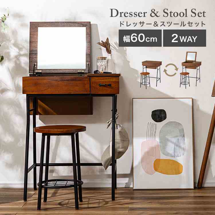 ■ドレッサー スツール 2点セット 鏡台 椅子付き 木製 GT-312 ドレッサーデスク 2way おしゃれ アンティーク デスク チェア セット 兼用 コ