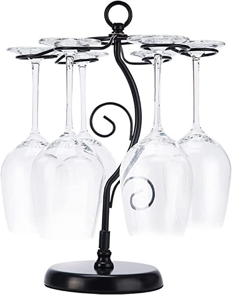 ■ワイングラスホルダー オシャレな ワイングラススタンド アンティーク 卓上 吊り下げグラスホルダー 6個掛用 ブラック-ツリー ブラック