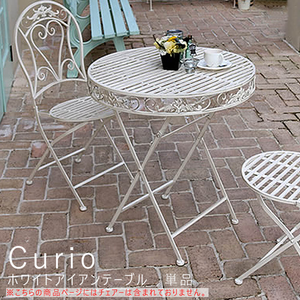 ■Curio(クリオ)ホワイトアイアンテーブル ホワイトアイアンテーブル カフェ テラス 庭 机 テーブル アンティーク インテリ