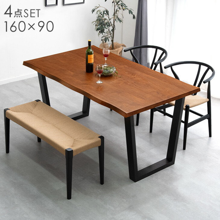 ■ダイニングテーブルセット 4人掛け 4点セット ベンチ セット ペーパーコード 160cm テーブル 長方形 ダイニングセット ダイニングテーブ