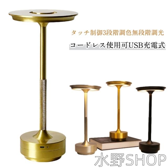コードレス 間接照明 タッチセンサー 充電式 北欧 おしゃれ ベッドサイドライト 寝室 テーブルランプ 卓上 レトロ 電気スタンド テーブルライト アンティーク ナイトライト 無段階調光 3段階調色 ベッドサイドランプ ゴールド シルバー ブラック