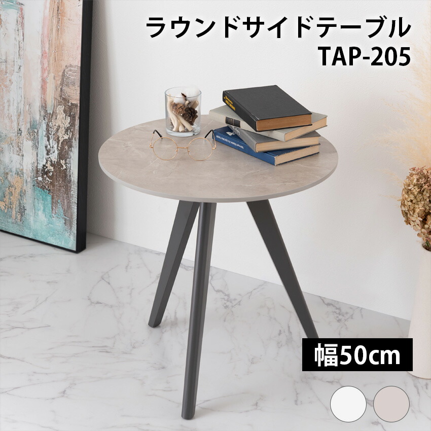 ラウンドサイドテーブル TAP-205 大理石調 大理石 韓国インテリア シンプル おしゃれ スタイリッシュ 直径50cm 50×50 丸テーブル テーブル
