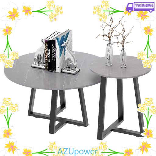 ■UNHO ローテーブル おしゃれ 一人暮らし 丸 2個セット 大理石 コーヒーテーブル スタイリッシュ リビングテーブル ダイニングテーブル 防