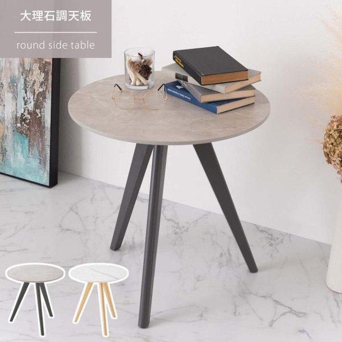 ■ラウンドサイドテーブル グレー ホワイト W50×D50×H50 円形 大理石調 大理石 韓国インテリア シンプル おしゃれ スタイリッシュ 直径50