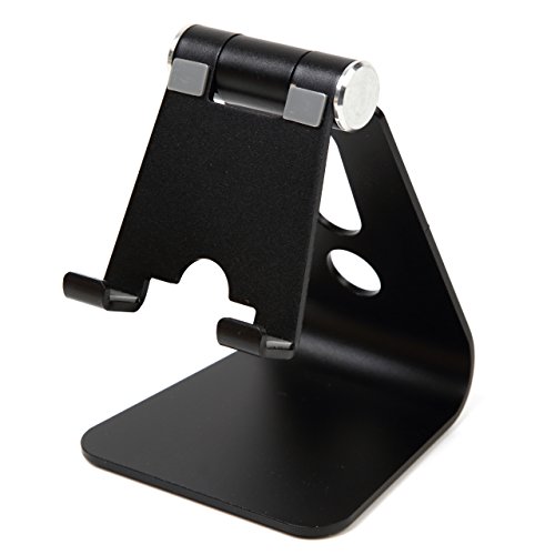 ブラック アルミ製でクール スタイリッシュ デザイン 角度調整が便利 スマホ タブレット スタンド 充電可能 となります。 スタンドの角度が自由に270度自由調整できます。スムースに無段階調整でき、 デバイスを縦置き横置き どちらでも使用可能。動画視聴、読書、WEB閲覧がたいへん楽になります。 先端フックは幅11MMまでの暑さに対応。底にはシリコーン製のクッションがあり、デバイスをしっかり滑らないように固定し、また傷から保護できます。 充電ケーブルを挿しても、ホール設計によりそのまま後ろの穴部分を通してやれば、ケーブルが邪魔にならず、スッキリとした状態で充電しながら使うことができます。 キッチン・オフィスデスク・ナイトテーブル・食卓において使用すれば、仕事中 作業中でもメールやメッセージ受信を確認できるので