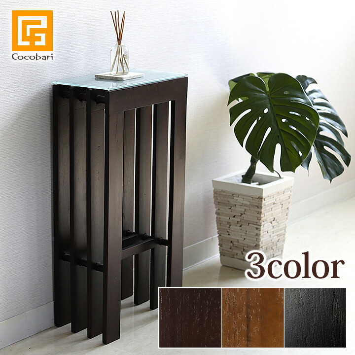 ■商品説明バリのラグジュアリーなリゾートホテルにはゆったりとした快適な時間が流れています。エントランスや通路には、アジアのどことなく懐かしい雰囲気とバリの洗練を感じさせるモダンな家具たち。こんな家具が自分の部屋にあったら見慣れたいつもの空間でも極上リゾートホテルの非日常感が味わえるだろうな…。そんな思いから、日本でも使いやすいコンソールテーブルをオリジナルで製作。チークを格子状に組んで、適度に背景を透かすデザインは開放的でありながら、モダンでとてもスタイリッシュ。立って作業しやすい高めのサイズで、花台、電話台、お香やアロマキャンドルスペースにも。チークの温もりとモダンでスタイリッシュな感覚を併せ持ったスタンドテーブル。バリモダン、和モダン、スタイリッシュなお部屋におすすめ。■サイズ横:約35cm 奥行:約20cm 高さ:約70cm 重量:約5kg■素材チーク・ガラス■仕上げラッカー塗装■生産地バリ島 (ガラスの天板は日本製)■関連情報サイドテーブル スリム 玄関 アジアン家具 バリ家具 バリ雑貨、バリ島、アジアン雑貨 チーク材