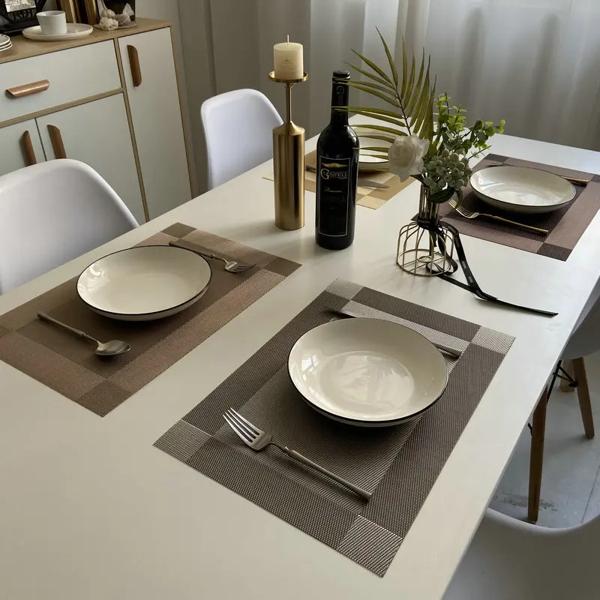 ■ダイニングテーブル用手織りマット 洗える耐久性のあるPVCテーブルマット スタイリッシュ