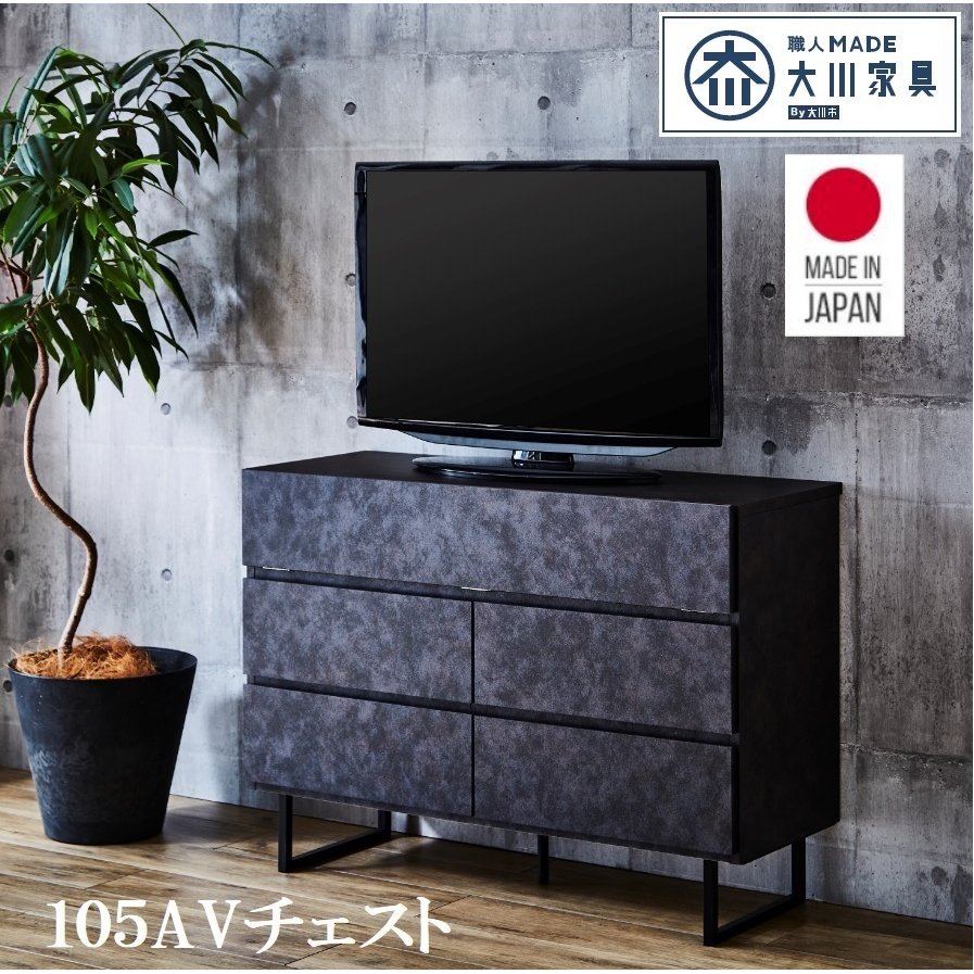 ■サイドボード 幅105cm 105AVチェスト テレビ台 アイアン 脚付き お掃除ロボット対応 セラミック調 スタイリッシュ デッキ収納 石目 モダ