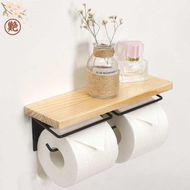■モダン 北欧風 スタイリッシュ 個セット インテリア トイレットペーパーホルダー 連式 バータイプ 木棚 賃貸 天然木 シンプル スチール