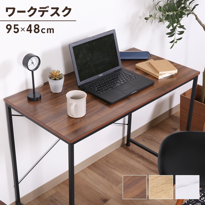 ■パソコンデスク PCデスク 木目調 幅95cm 奥行48cm ワークデスク 勉強机 学習机 テレワーク スチール脚 スタイリッシュ