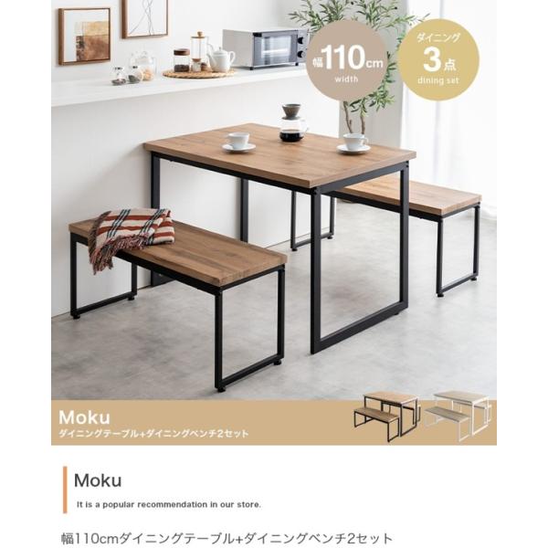 ■ダイニングテーブルセット 2人 3人 4人 幅110 長方形 角型 おしゃれ 木xスチール アイアン モダン 3点 ベンチ2脚+テーブル Mokuシリーズ