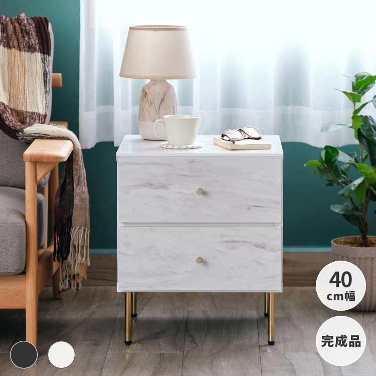 ■チェスト 大理石 石目柄 収納 2段 テーブル 木製 北欧 ローテーブル デコラティブ メラミン 黒脚 お洒落 シック スタイリッシュ 一人暮ら