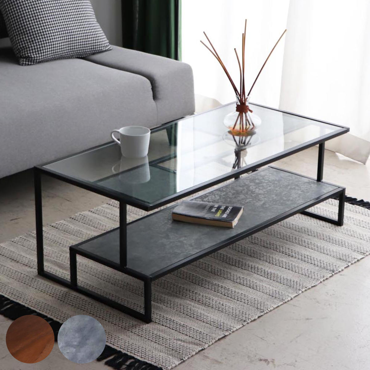 ■ローテーブル 幅105cm ガラス天板 センターテーブル ロジック ( テーブル 机 リビング 収納付き 脚部 組み換え デザイン リビングテーブ