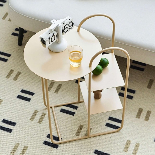 【送料無料】3段テーブル サイドテーブル 階段 アイボリー デザイン 飾り棚 北欧インテリア 韓国インテリア 家具 収納家具 シェルフ おしゃれ 丸 北欧 収納 円型 丸型 シンプル
