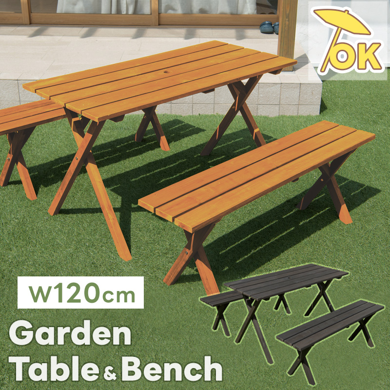 ■ガーデンテーブルセット 木製 テーブル ベンチ おしゃれ 庭 テラス 組立式 DIY バーベキュー ホームパーティー パラソル 家庭用 ガーデニ