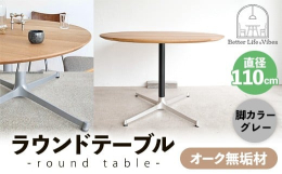 ■【ふるさと納税】直径110cmオーク無垢ラウンドテーブル 脚カラーグレー【木製 テーブル ダイニングテーブル オーク 円形 4〜5人用 一本脚