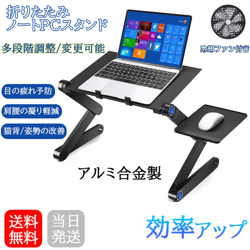 ■【即納】ノートパソコンスタンド パソコン PCスタンド 冷却ファン付き 折りたたみ式 パソコンスタンド アルミ製 テーブル パソコンデスク
