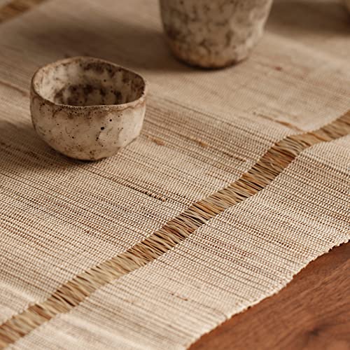 ◆商品名:【慕布?MOBUKIA】テーブルランナー 手織り布 ちょま生地夏布 天然素材シンプル 素朴なモダン 中華風和風侘寂わびさび禅茶席 断熱テーブル
