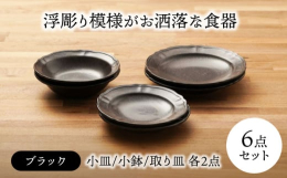 ■【ふるさと納税】【美濃焼】浮彫り模様がお洒落な食器 小皿・小鉢・取り皿(各2点 合計6点ペアセット)(ブラックカラー)【うつわやさん