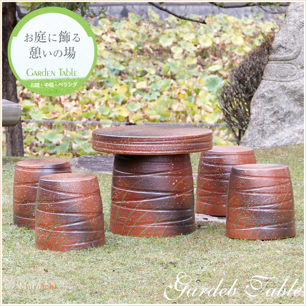 ■陶器 【送料無料】 15号ガーデンテーブル テーブル 物 お庭、ベランダ用庭園セット ガー信楽焼 おしゃれ 和風【手作り】