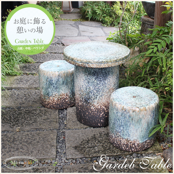■陶器 【送料無料】 20号ガーデンテーブル テーブル 物 お庭、ベランダ用庭園セット信楽焼 おしゃれ 和風【手作り】