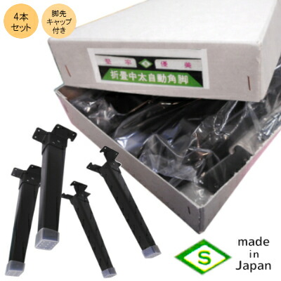 ■【土日祝発送可】ヒシエス 折畳自動角脚 /中太 /黒 日本製 和風 手動折畳式 座卓作成脚 角脚 テーブル脚 取付ビス・脚先キャップ付き 1組