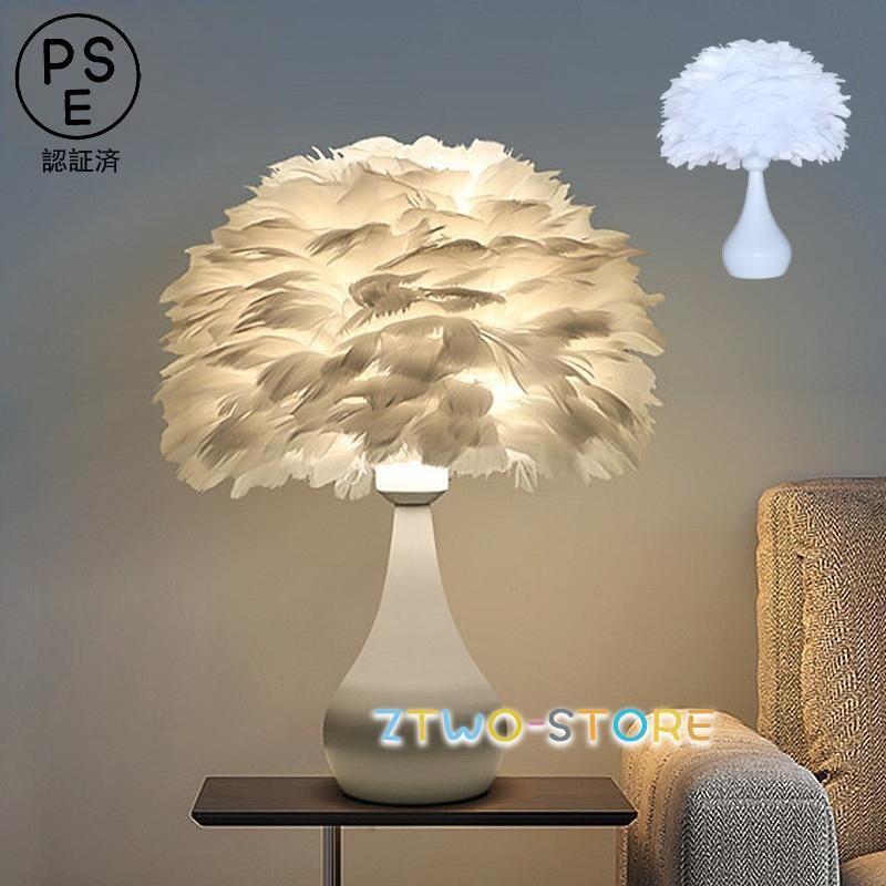 卓上ライト 北欧 おしゃれ LED対応 姫系 テーブルライト 陶器 羽根 羽毛笠 コンセント 間接照明器具 和風 デスクライト リビング 寝室 卓上照明 スタンドライト