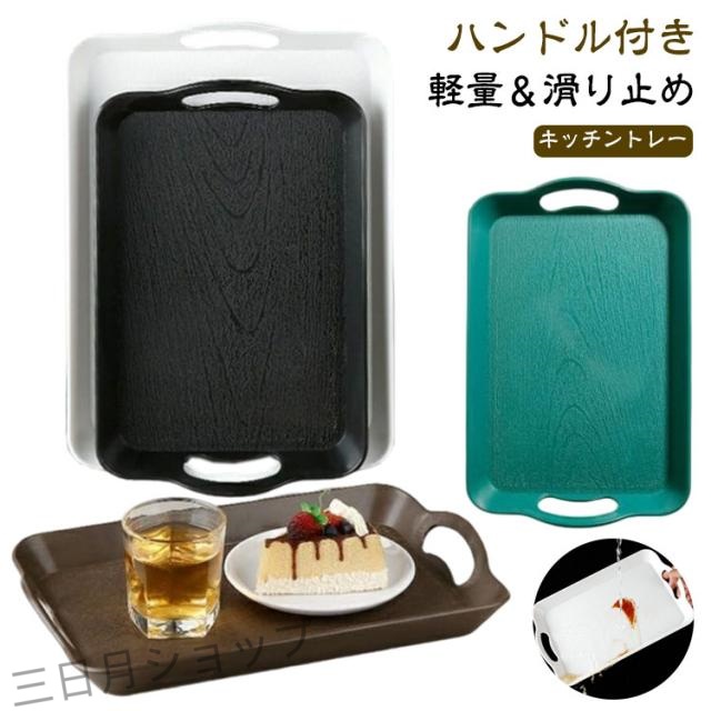 ■カフェ トレー サービングトレイ お洒落 レストラン トレー 洋風 滑り止め 長方形 ハンドル付き プラスチック 和風 キッチントレイ コー