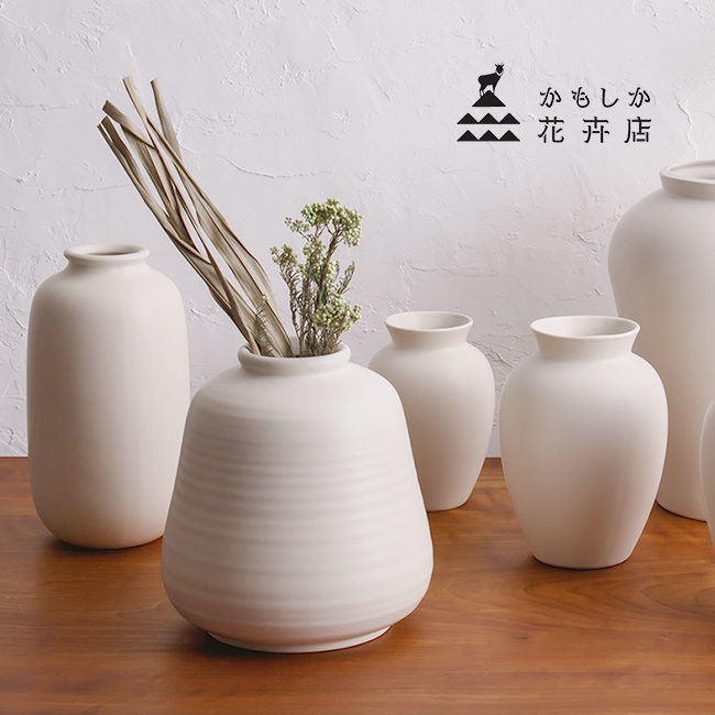 ■かもしか花卉店 花瓶 丸(花びん おしゃれ フラワーベース 枝物 一輪挿し 白 インテリア モダン 和風 花束 日本製)【F】