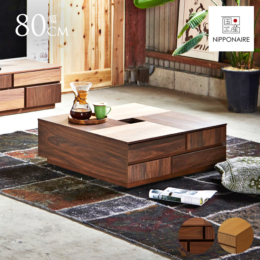 ■NIPPONAIRE ニッポネア センターテーブル アトリ 飾り穴付き 幅80cm ウッド テーブル 引き出し 収納付き 北欧 インテリア ジャパンディ