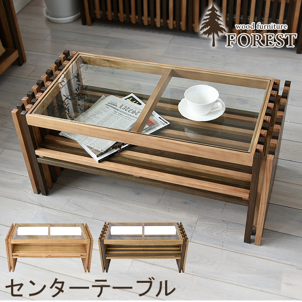 ■ガラステーブル ガラス テーブル おしゃれ ローテーブル ガラス リビングテーブル センターテーブル 木製 北欧 西海岸 フォレスト 幅84